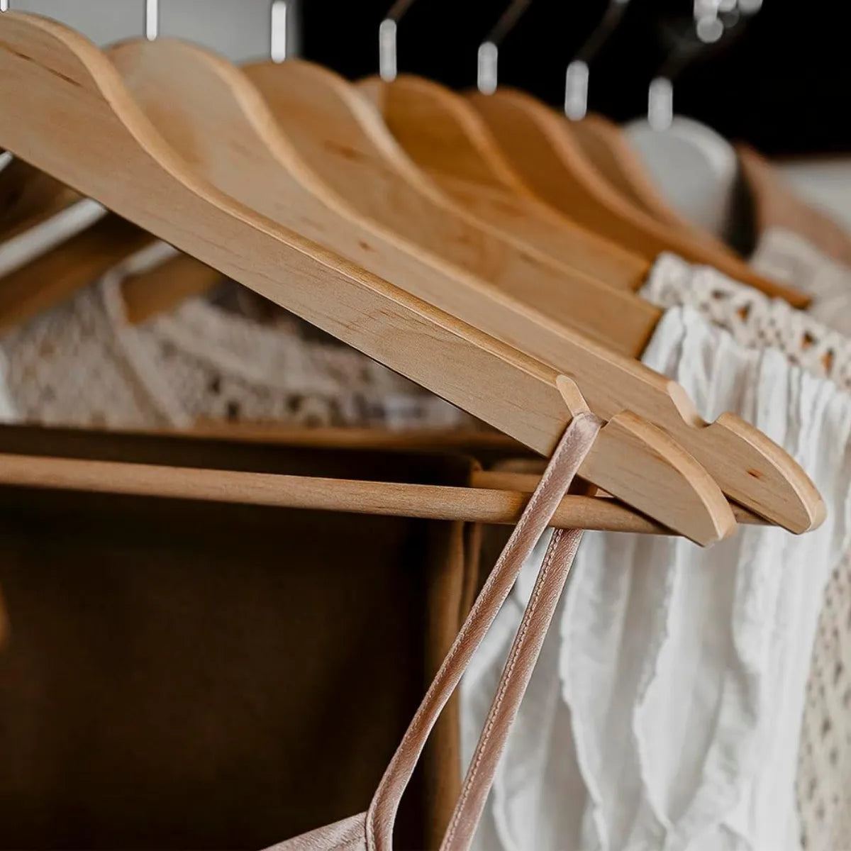 Haz que cada prenda tenga su lugar con estilo y funcionalidad. ¡Tus ganchos de madera definitivos están aquí!
