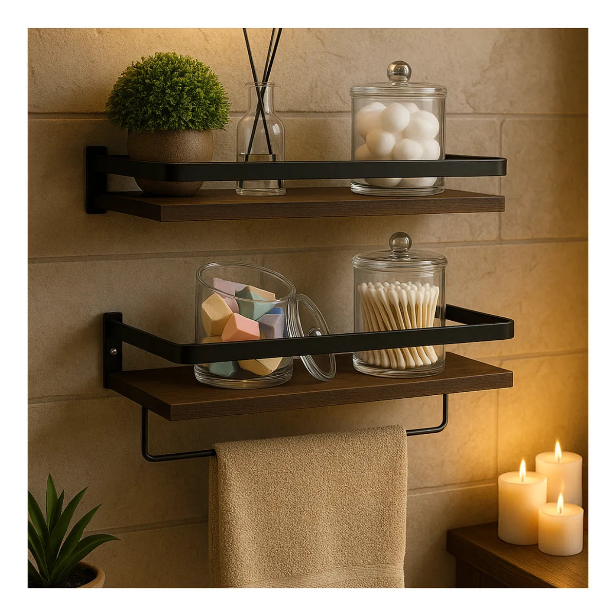 Hogar 2 Repisas Flotante Multiproposito Repisa Baño Madera Moderna