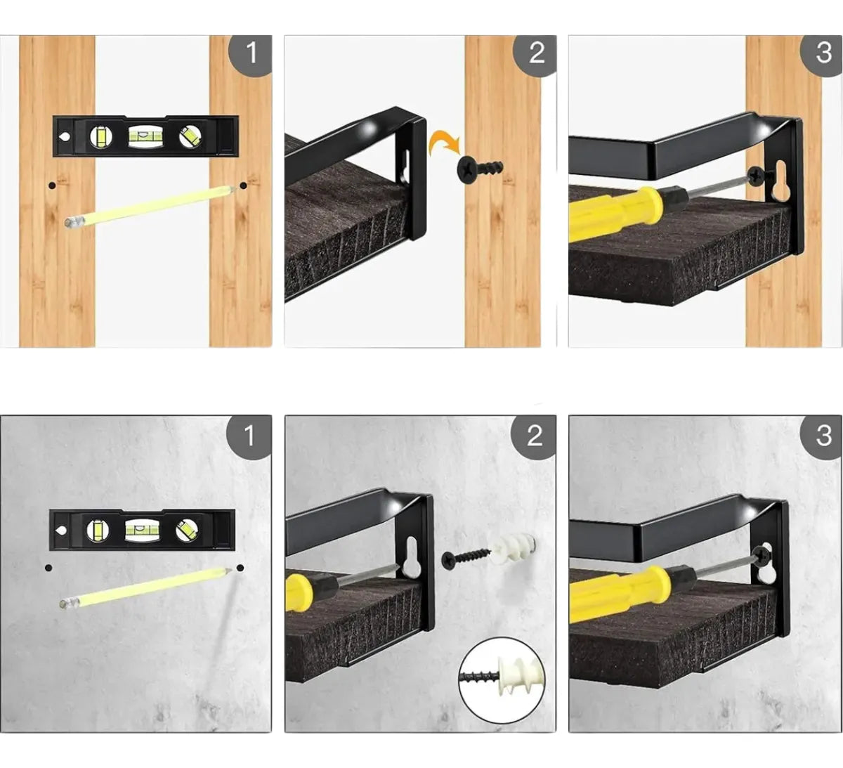 Instalación sencilla: Sólo requiere 3 pasos (desplegar soportes, colocar la tabla y barra, fijar a la pared) y es compatible con paredes de madera, yeso u hormigón.